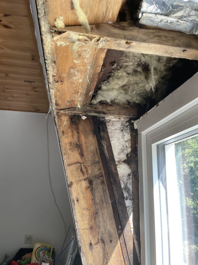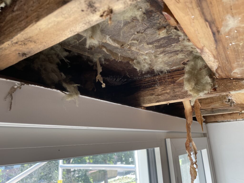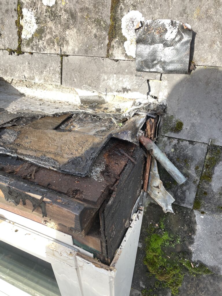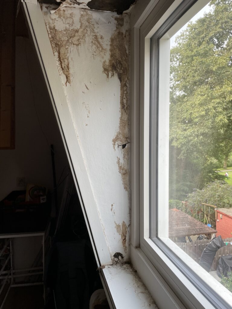 Dit dakkapel is oud en er is een langdurige lekkage ontstaan.