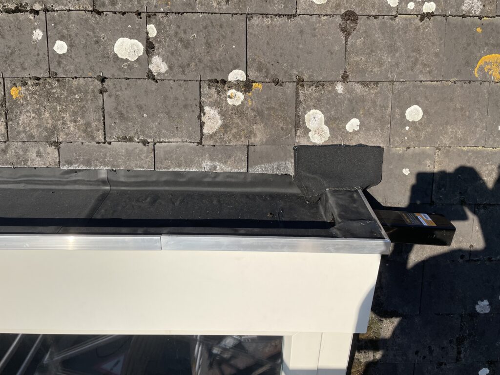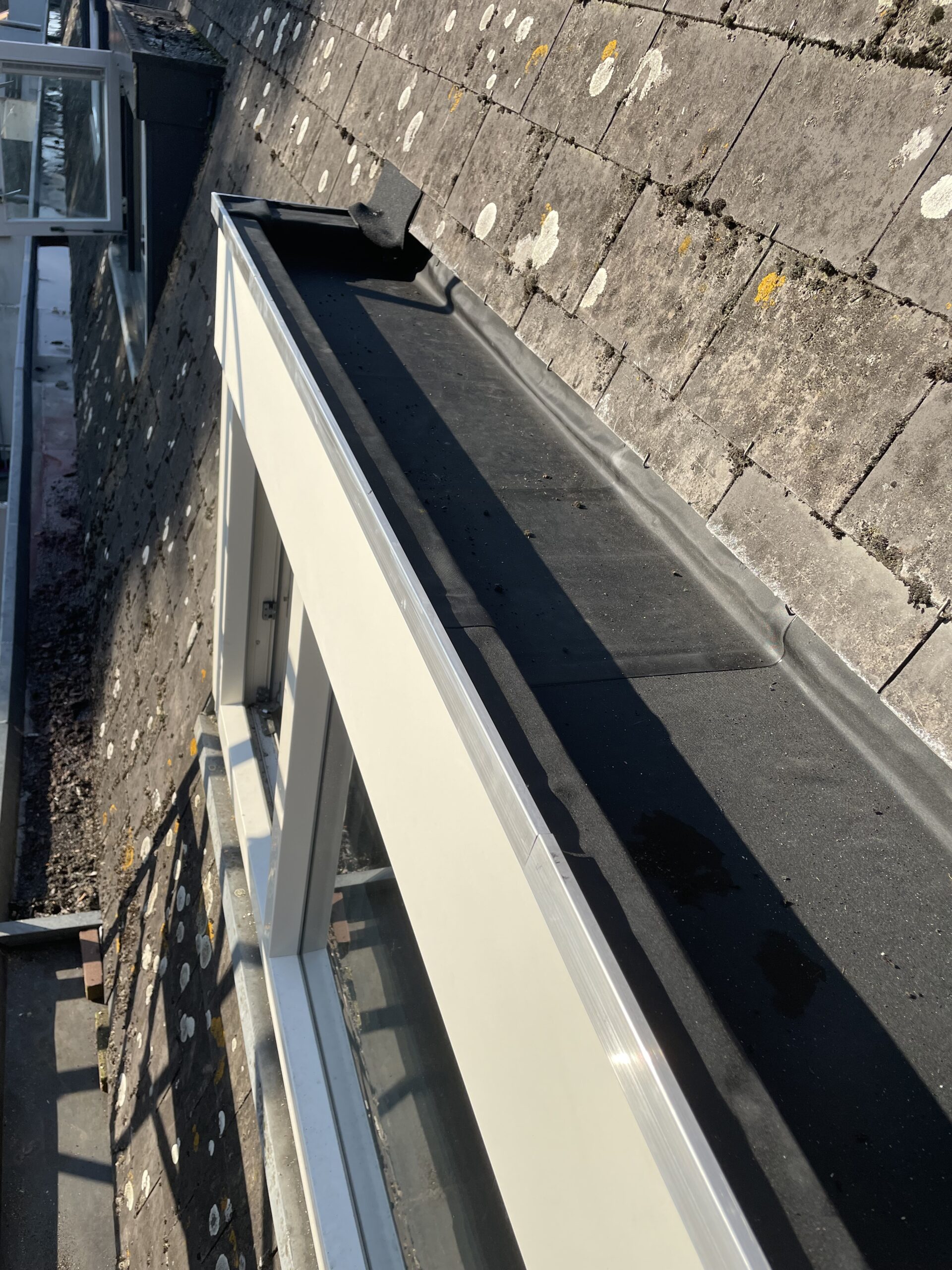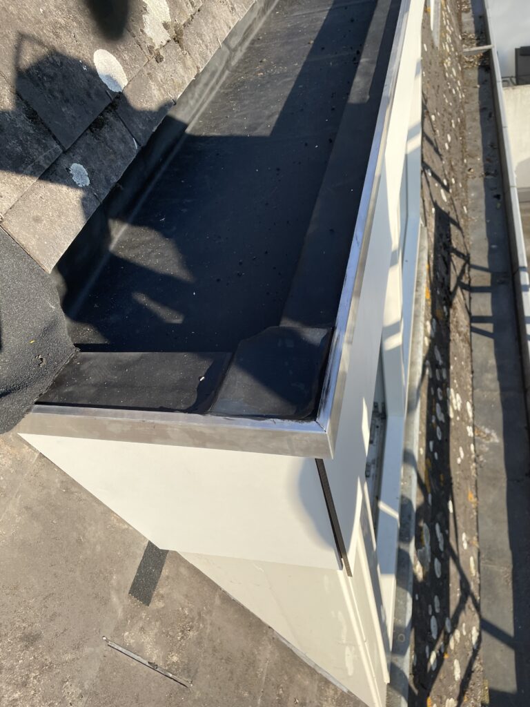Langdurige lekkageBinnenzijde weg gesloopt.Het constructiehout is nog in goede staat.Dakbedekking en dakbeschot vervangenDit is het nieuwe dak(je)De dakbedekking is van EPDMEen mooie grote uitloop.Aan de binnenzijde alles weer netjes afgetimmerd.