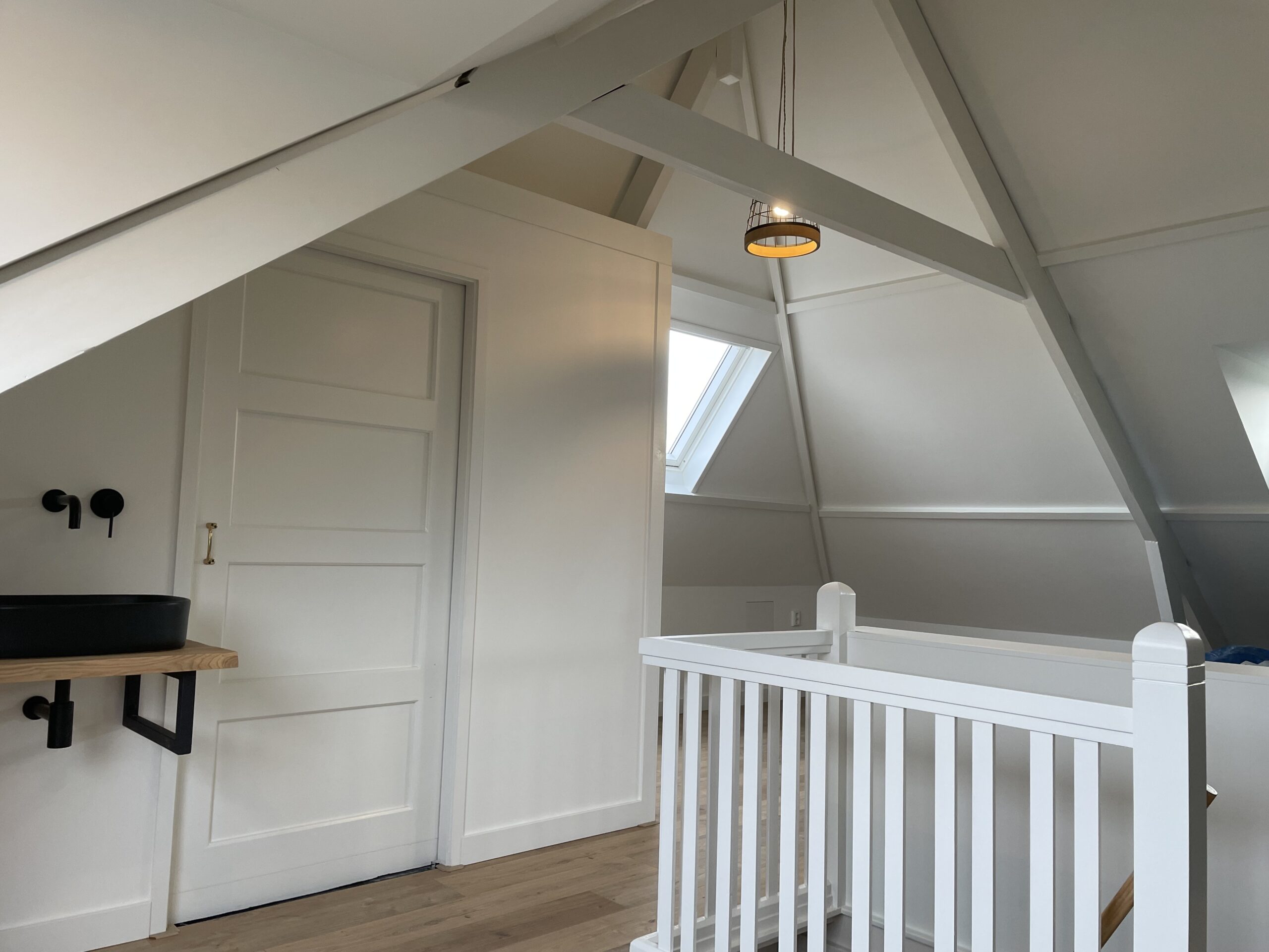 Deze zolder was helemaal kaal. De vraag was om de kap helemaal te isoleren met hoogwaardige isolatie en deze verder helemaal af te werken. Deels als logeerruimte maar ook deels als atelier.